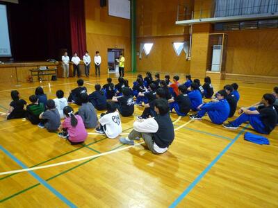 避難訓練では、礼文町役場 防災監・防災係長の田住さんに各学年のシェイクアウト訓練の様子を見て頂き、講評を頂きました。