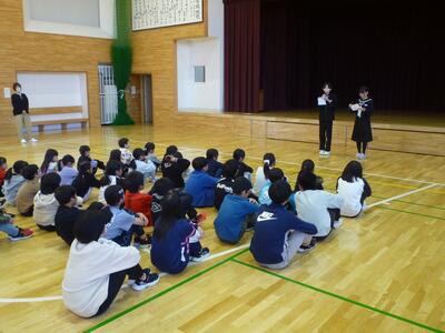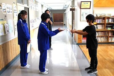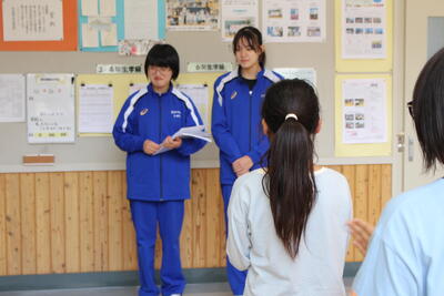 昼休みに生徒会の代表が、礼文小学校に行って、香中祭のPRをしてきました。午前中におこなわれる「お祭り広場」の内容をわかりやすく説明し、お祭り広場で使用する「遊び券」をプレゼントしました。