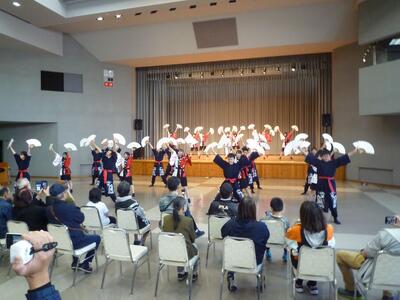 礼宝園訪問の後、ピスカ21に移動して、香中ソーランを地域の皆様に披露しました。たくさんの方々が会場に来てくださり、アンコールも頂き、最高のソーランを披露することができました。