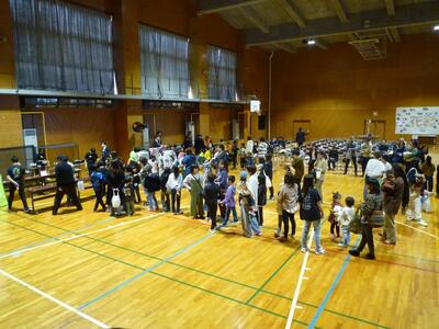 午前の部は9:30~11:00まで、体育館で「お祭り広場」をおこなっています。射的、くじびき、占い(マジック)、気配斬り、謎解き迷路で、小さなお子さんから大人の方まで、楽しんでもらえるように工夫されています。