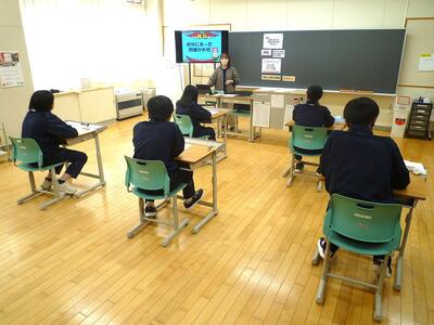 3年生は、これからむかえる受験において、受験期の食事のポイントを学習しました。風邪の予防にはビタミンとタンパク質、青魚・大豆製品で記憶力アップ、ストレス軽減にカルシウムなどなど。