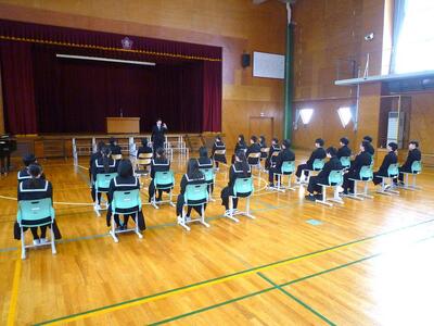 3月8日(日)に第79回卒業証書授与式が実施されます。卒業生、在校生がそれぞれ卒業証書授与式の練習をおこなっていましたが、5時間目に全体で練習をおこないました。