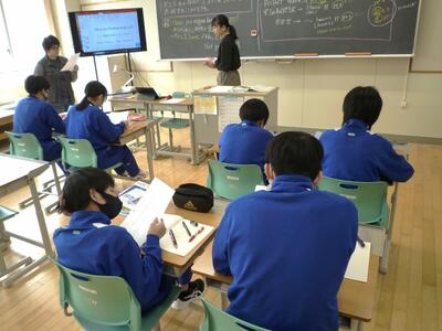 今日は、英語サークルと算数・数学サークルの先生方が5時間目に来校し、1年数学と2年英語の授業を参観しました。