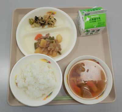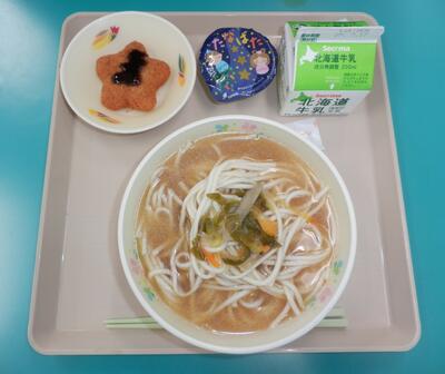 牛乳,肉ねぎみそうどん,星のコロッケ,七夕ゼリー