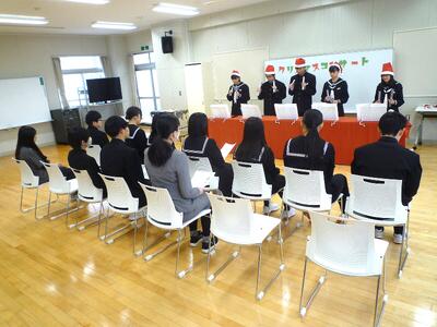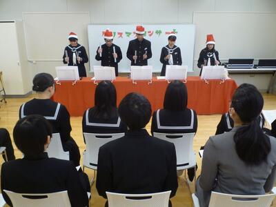 クリスマス コンサート ~1年音楽~ 投稿: 管理者1 (12/23) カテゴリー: 授業の様子 1年生が音楽でトーンチャイムの練習をしました。今日はクリスマスコンサートとして、「ジングルベル」と優里さんの「ドライフラワー」の2曲を演奏しました。コンサートを参観した3年生からは、盛大な拍手が送られました。 1年生の皆さん、ステキな演奏をどうもありがとうございました。 Tweet -