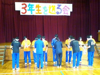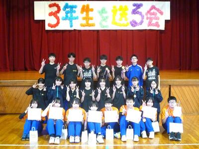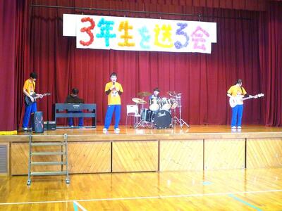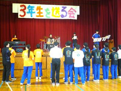 午後から生徒会が主催する「3年生を送る会」をおこないました。前半の有志発表では、7グループによるバンド演奏、歌や弾き語り、ダンス、クイズなどが披露され、楽しみました。