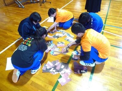 後半の生徒企画では、パズルと逃走中をおこない、頭と体を使って盛り上がりました。その後、プレゼント係から3年生に記念品が渡され、記念写真を撮影し終了しました。