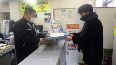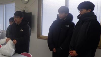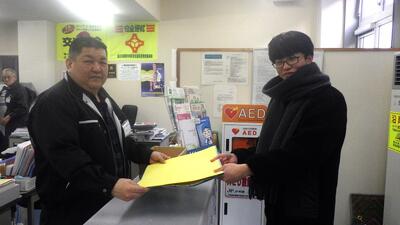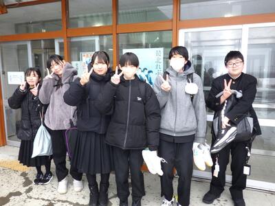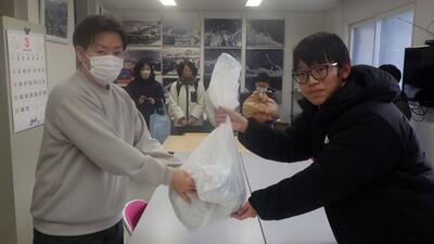 礼文小学校と香深井小学校の児童会と一緒に、生徒会役員が代表して、全校生徒が書いた感謝のメッセージを届けてきました。