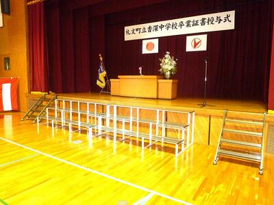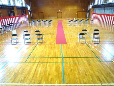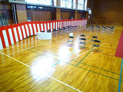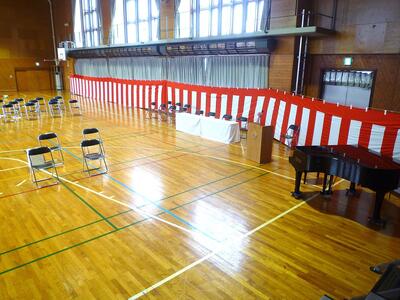 昨日の放課後、1・2年生が卒業証書授与式の会場設営をおこまいました。
