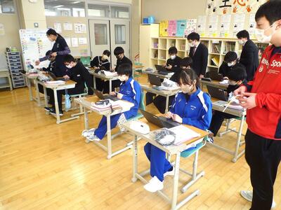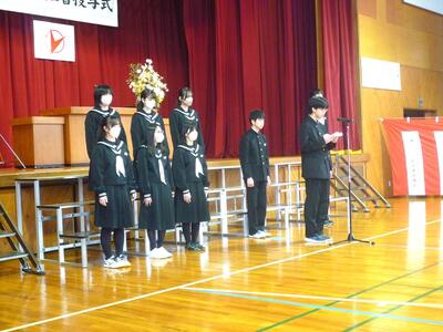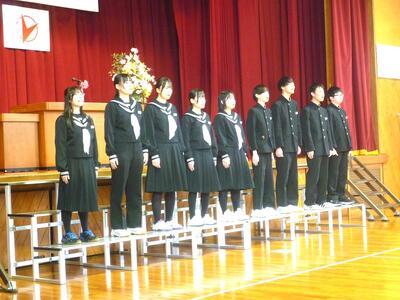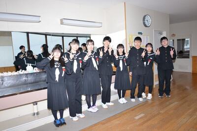 みんなで職員室に来て、あいさつをしてくれました。4月からは高校生です。新しい環境の中で、これからも自分自身を磨き続けて欲しいと思います。