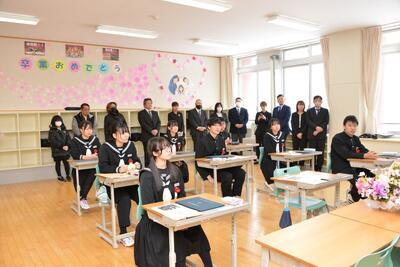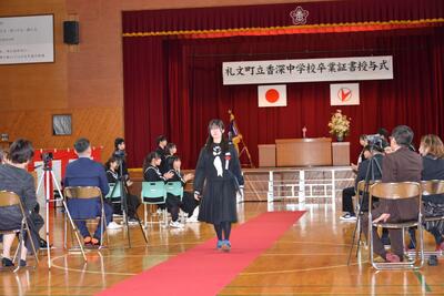 礼文町副町長 石動 仁 様、礼文町教育委員会 教育長 竹中 俊一 様をはじめ、たくさんのご来賓ならびに保護者の皆様にご臨席を賜り、第79回 卒業証書授与式を挙行することができました。