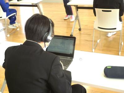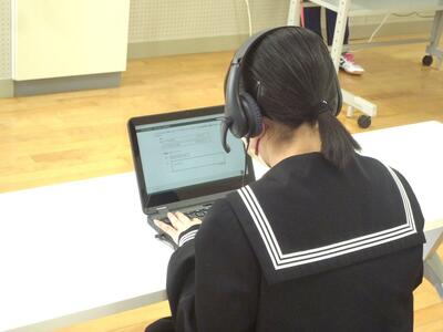 今日は2年生が、実際にタブレットを使って接続テストとヘッドフォンやマイクの調整をしながら、いくつかの設問に取組みました。本番もタブレットやヘッドフォン・マイクを上手に使って、実力をしっかりと発揮して欲しいと思います。